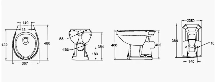 One piece toilet